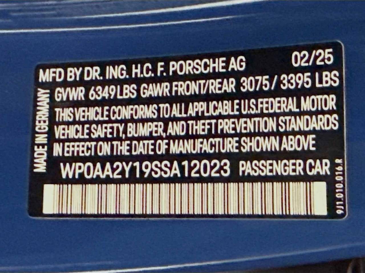 - Vehicle Name: Porsche Taycan