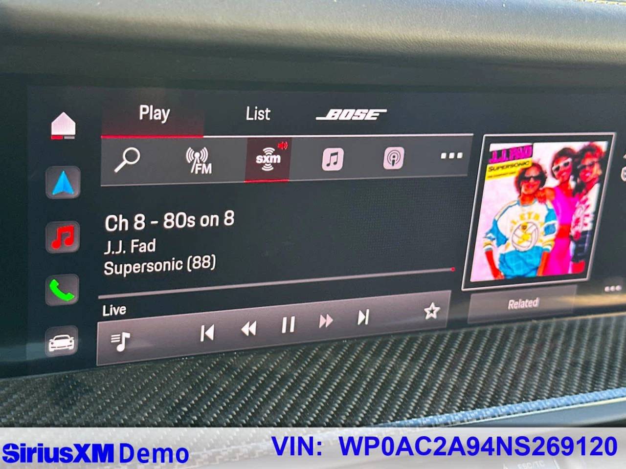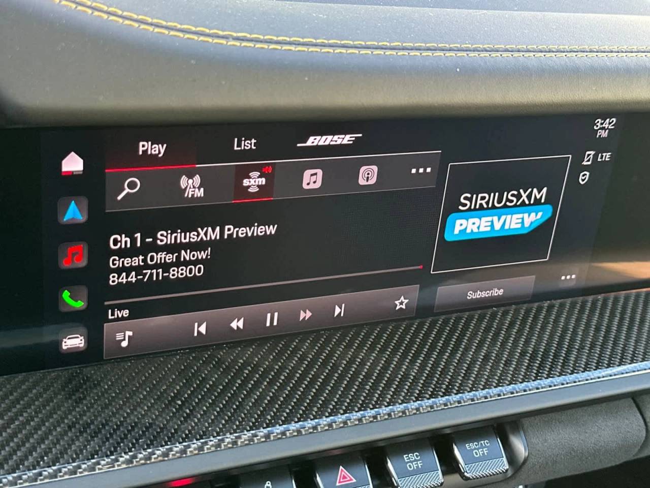 - Radio: Porsche Communication Management (PCM) -inc: online navigation module, Connect Plus (wireless Apple CarPlay and wired Android Auto, LTE communication module, wireless internet access and numerous Porsche Connect Services), SiriusXM w/360L (3-month trial), integration of Apple Music and Apple Podcasts, voice pilot w/natural language understanding and activation via Hey Porsche, navigation plus w/real time traffic Information and online map update, sound package plus (analog sound system, 8 loudspeakers, 150-watt total output w/integral amplifier and digital signal processing) and voice control