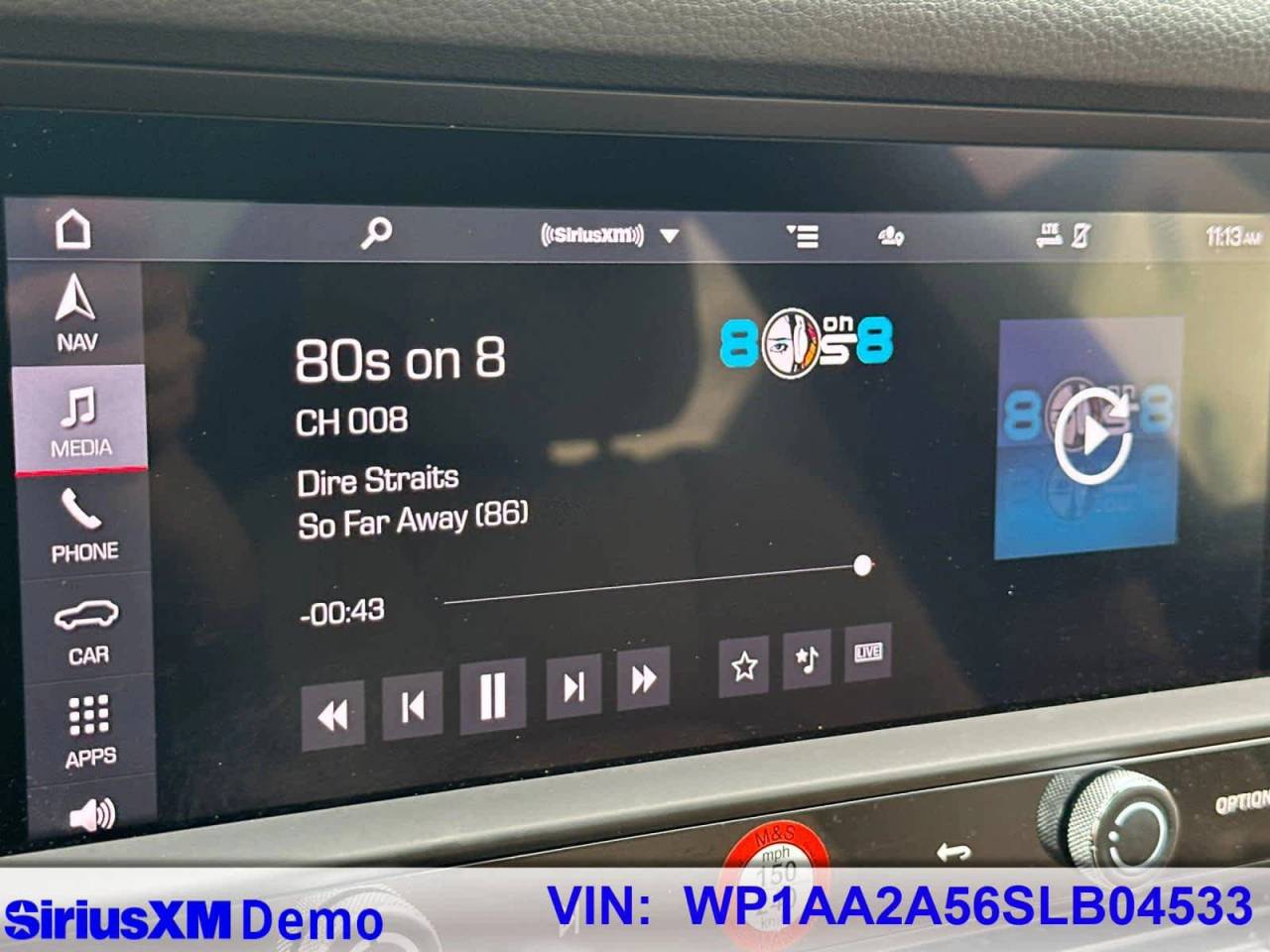 - Radio: Porsche Communication Management (PCM) -inc: sound package plus w/8 speakers and 150 watts, navigation module, voice control, wireless Apple CarPlay w/Siri voice recognition and SiriusXM w/3 month trial subscription
